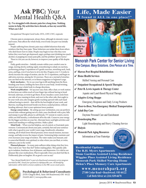 “Your Mental Health Q&A” is part of a Beachwood community service program provided by PBC. Email your questions to info@psychbc.com. All identifying information will be held in strictest confidence in the PBC secure email system.