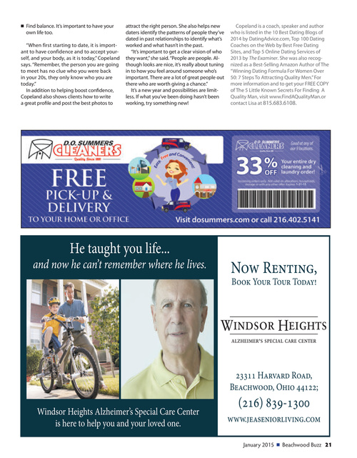 attract the right person. She also helps new daters identify the patterns of people they’ve dated in past relationships to identify what’s worked and what hasn’t in the past. “It’s important to get a clear vision of who they want,” she said. “People are people. Although looks are nice, it’s really about tuning in to how you feel around someone who’s important. There are a lot of great people out there who are worth giving a chance.” It’s a new year and possibilities are limitless. If what you’ve been doing hasn’t been working, try something new!