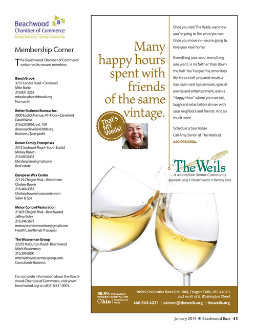 he Beachwood Chamber of Commerce welcomes its newest members:
