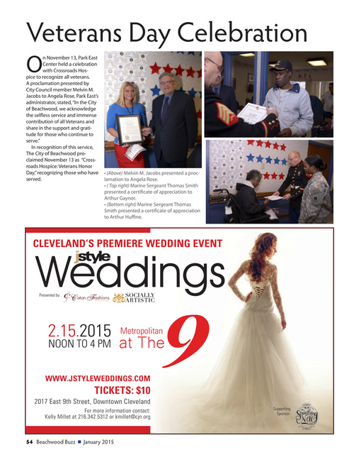 n November 13, Park East Center held a celebration with Crossroads Hospice to recognize all veterans. A proclamation presented by City Council member Melvin M. Jacobs to Angela Rose, Park East’s administrator, stated, “In the City of Beachwood, we acknowledge the selfless service and immense contribution of all Veterans and share in the support and gratitude for those who continue to serve.” In recognition of this service, The City of Beachwood proclaimed November 13 as “Crossroads Hospice: Veterans Honor Day,” recognizing those who have served.