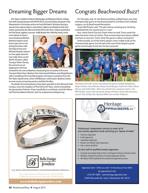 R.H. Myers residents Helene Weinberger and Beatrice Nechin (sitting, from left) recently posed with WCPN 90.3’s Sound of Ideas producer Amy Wasserstrom Cummings and on-air host Michael K. Mcintyre during a special show about dreams and wishes. Helene and Beatrice both had wishes granted by the Menorah Park D.R.E.A.M. Team. Helene published her first book, Ageless Journey: Walk Beside Me, Hold My Hand, and it is her dream to have a second book published. Beatrice’s dream came true in part, live on-air, during the show with the help of Amy and Michael. Beatrice dreams to once again have her own radio show, as she did for 30 years, called Young at Heart. During the women’s on-air appearance, the host turned the mic over to Beatrice, introducing her as hostess of her own Young at Heart show. Beatrice then interviewed Helene, providing listeners with a sampling of the monthly program she hopes to produce from the R.H. Myers Apartments, which will likely be a web stream. Beatrice wishes to cover issues concerning seniors and their families. Hundreds of amazing dreams have been granted on the Menorah Park Campus since the inception of The D.R.E.A.M. Team, which is funded by the generosity of donors. If you would like to contribute, email the Menorah Park Foundation Director Joel Fox at jfox@menorahpark.org.
