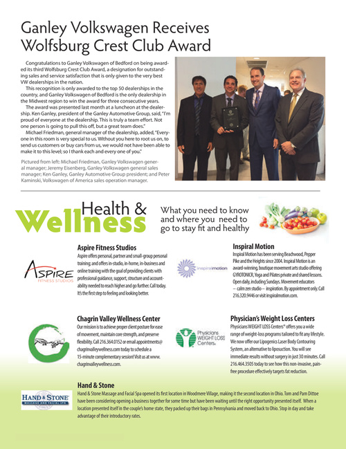 Hand & Stone Massage and Facial Spa opened its first location in Woodmere Village, making it the second location in Ohio. Tom and Pam Dittoe have been considering opening a business together for some time but have been waiting until the right opportunity presented itself. When a location presented itself in the couple’s home state, they packed up their bags in Pennsylvania and moved back to Ohio. Stop in day and take advantage of their introductory rates. 42 Beachwood Buzz n August 2015