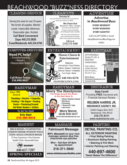 Call 216.297.0200 or email sales@BeachwoodBuzzMag.com today!