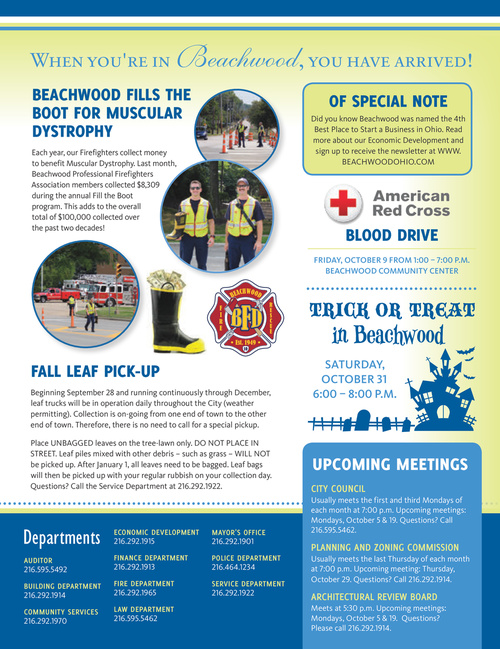 Did you know Beachwood was named the 4th Best Place to Start a Business in Ohio. Read more about our Economic Development and sign up to receive the newsletter at www. BEACHwOODOHiO.COM